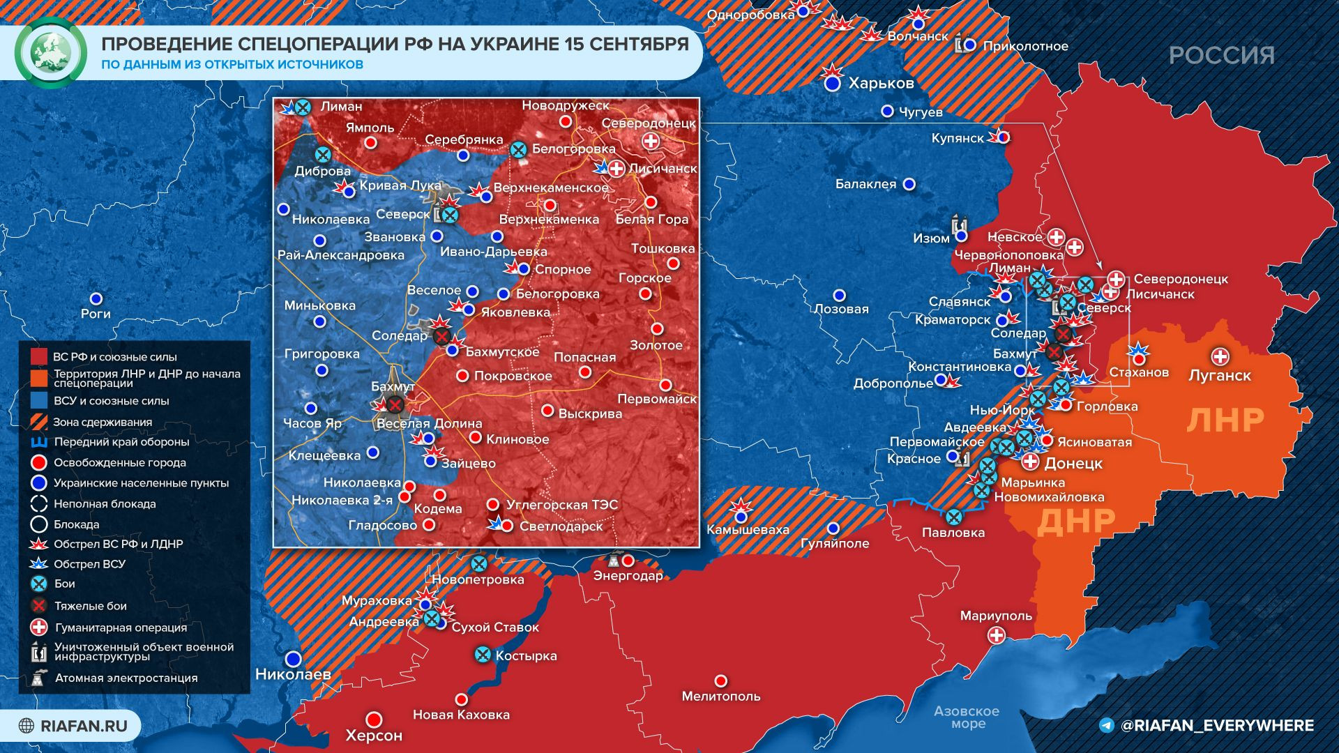 Обновленная карта боевых действий на Украине на 16 сентября 2022 года, решающее сражение на Юге может начаться уже сегодня