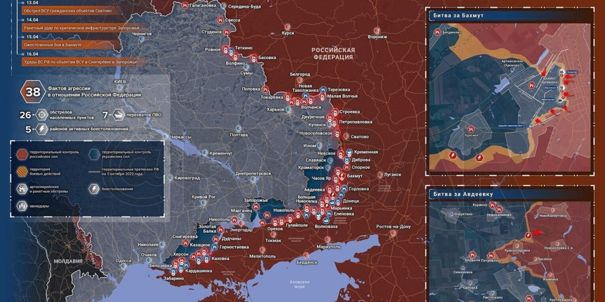 Новая, обновленная карта боевых действий на Украине 17 апреля 2023 года. Актуальные данные на сегодняшний день