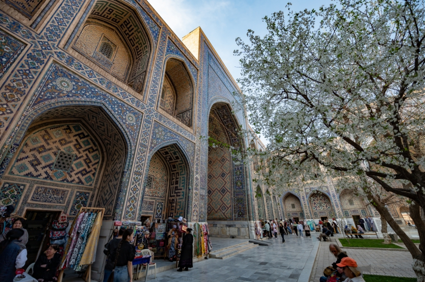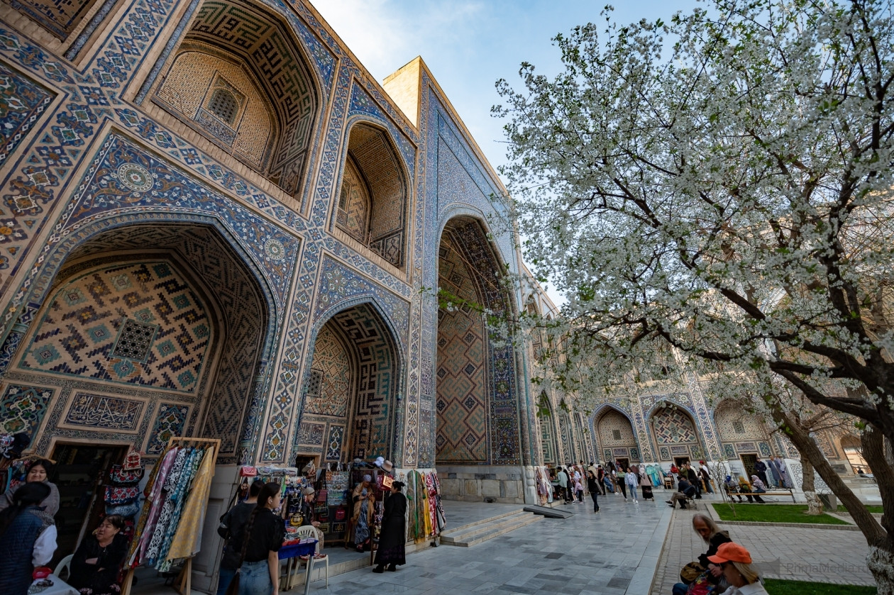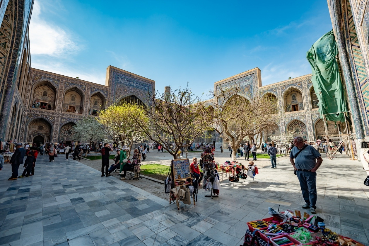 Во внутреннем дворе одного из медресе есть большая сувенирная ярмарка, а также замечательные виды для туристов и блогеров (особенно если подняться на второй этаж).