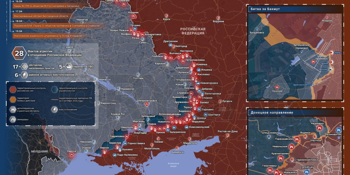 - Специальная военная операция на Украине: Карта военных действий и ситуация на фронтах вечером 19 апреля 2023