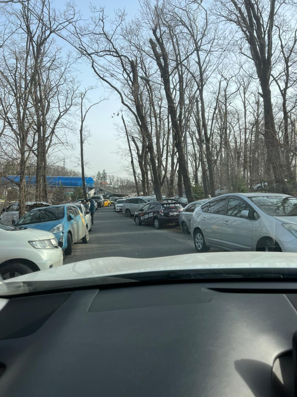 Как рассказывает Юлия, жительница улицы Таежная, в 8 часов 10 минут она выехала с дочерью в детский сад и на работу. Дорога к трассе идет довольно узкая, но обычно остается пустой. Сегодня же из-за припаркованных по обеим сторонам дороги машин проехать по ней было уже практически невозможно.