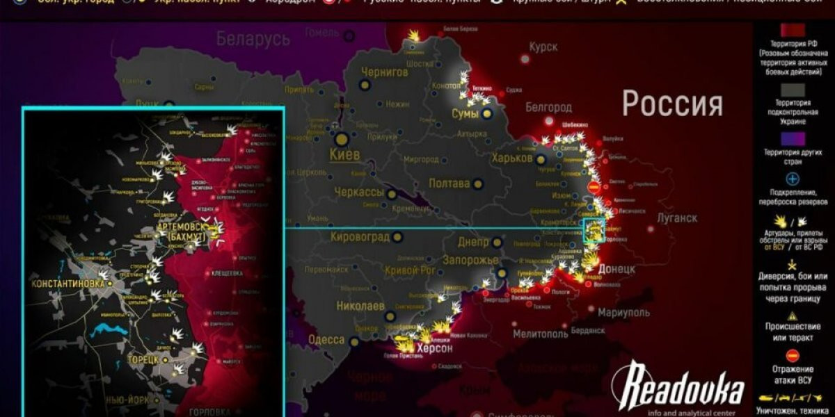 Карта боевых действий на Украине сегодня 21.04.2023 в реальном времени на сейчас