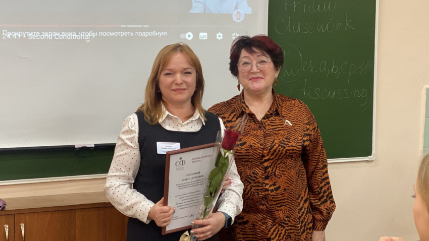 Людмила Талабаева наградила благодарственными письмами ряд педагогов школы. Фото: ИА PrimaMedia