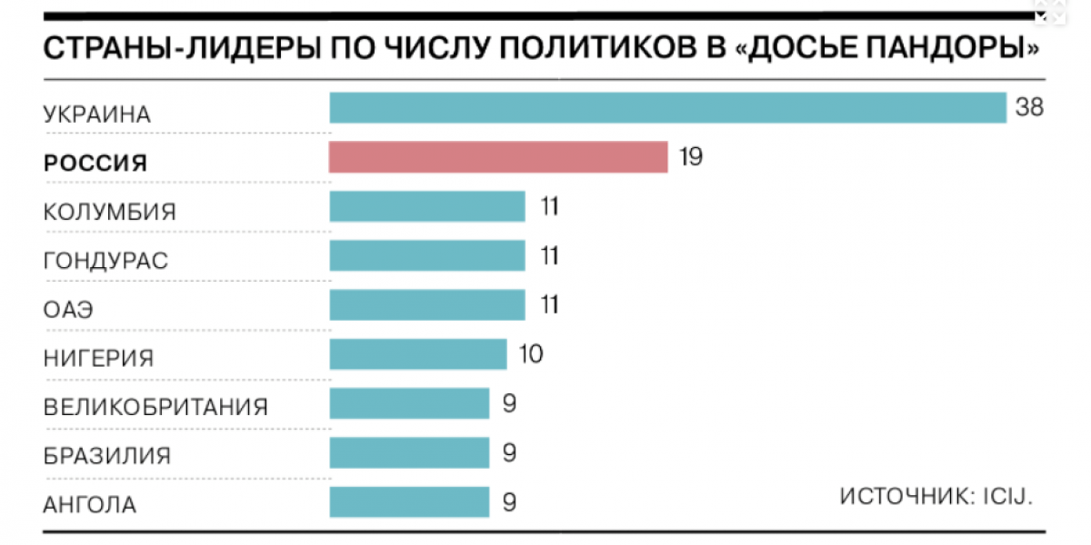 Украина почему-то на первом месте, причем с огромным отрывом. Без России, разумеется, тоже не обошлось. Но в этот раз нет ни слова про Путина. Неужели главная мишень досье Пандоры — Владимир Зеленский?