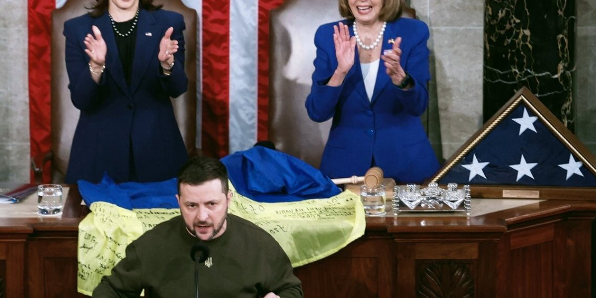 Кажется, ему рукоплещут в Конгрессе, президент США обнимает. А не видно радости в глазах В.Зеленского.