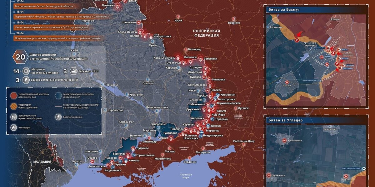 - Свежая карта боевых действий на Украине на сегодня 22.04.2023. Спецоперация РФ на Украине, день 423-й
