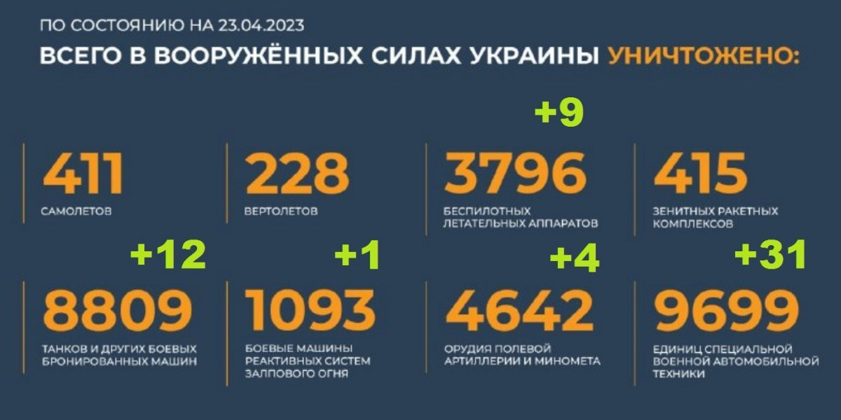 Всего уничтожено в вооруженных силах Украины на 23.04.2023. Брифинг Минобороны