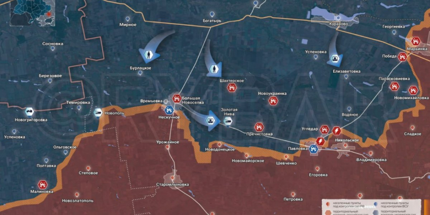 Южнее Первомайского российские войска при поддержке тяжелой бронетехники атакуют опорные пункты ВСУ в районе Невельского. В течение нескольких дней боёв ВС РФ закрепились юго-восточнее населенного пункта.