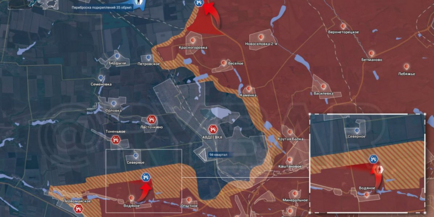 На севере от Авдеевки военнослужащие 132 отдельной гвардейской мотострелковой бригады ВС РФ продвинулись от трассы Н20 к железной дороге, идущей из Очеретино в Новобахмутовку, расширив плацдарм до Красногоровки.
