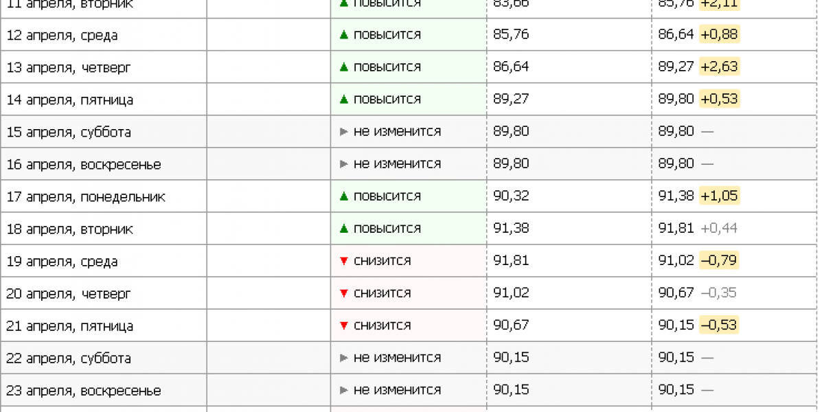 В последнее время мы наблюдали прямо-таки драматическое укрепление валют. С начала года рубль потерял более 16% к доллару и 13% к евро. Это, конечно, было вызвано тем, что экспорт упал. Правительству нужно было срочно пересмотреть бюджет. В таких условиях ослабление национальной валюты неудивительно. Однако сейчас Центробанк начал контрмеры для противодействия проседанию рубля. Да и объективных негативных факторов стало меньше. Стоит ожидать, что в начале и первой половине мая курс составит 75 рублей за доллар вместо 81. Но это консервативная оценка, — рассказал частный инвестор, основатель «Школы практического инвестирования» Фёдор Сидоров.