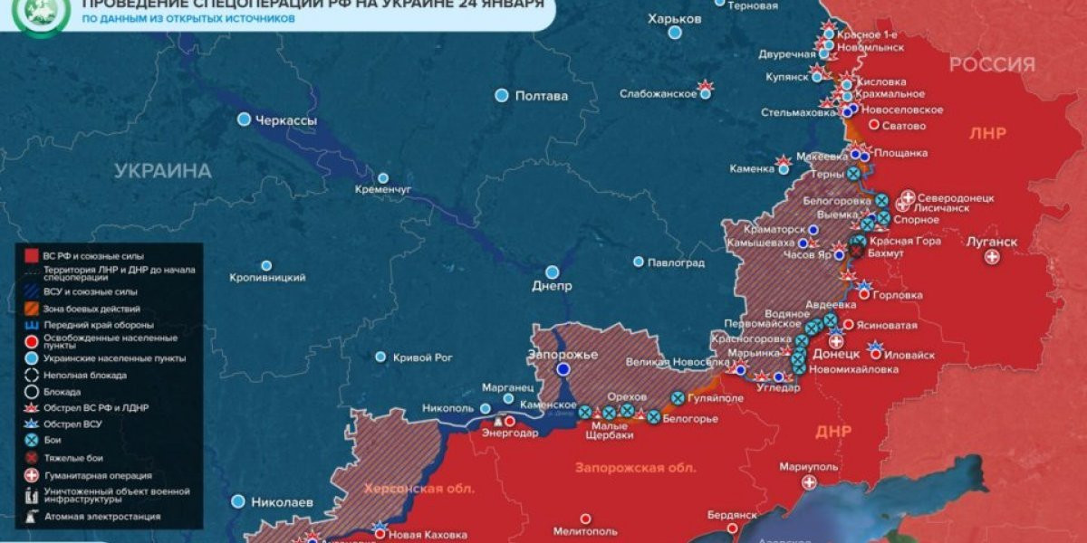 - Последняя обновленная карта военных действий на Украине сегодня, 24 января 2023