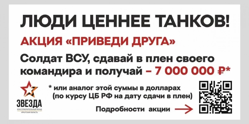 «Приведи друга» из ВСУ и получи приз: благотворительный фонд из Иркутска обещает украинским солдатам 7 млн рублей за пленного командира – шутка или?