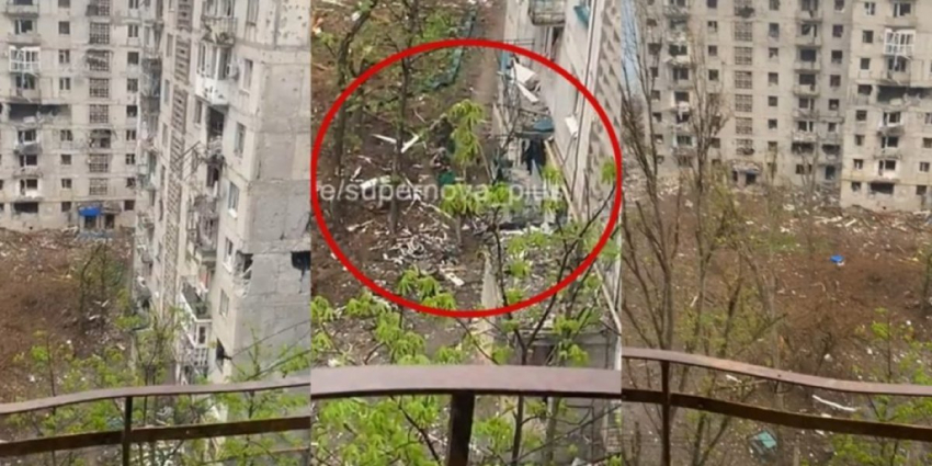 На втором видео – съемка с балкона многоэтажки, которую ВСУ, скорее всего, превратили в укрепрайон.