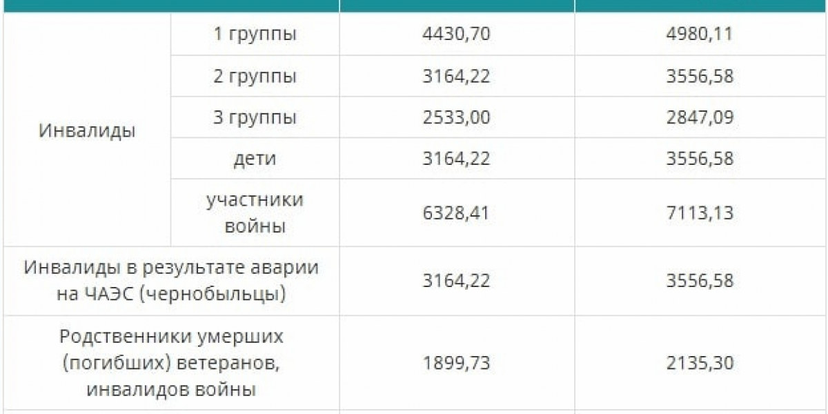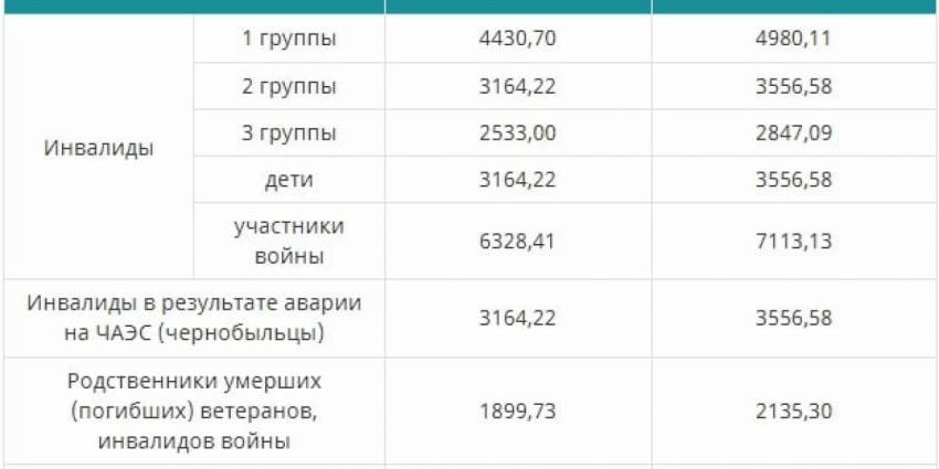 | Инвалиды | 1 группы | 4430,70 | 4980,11 |