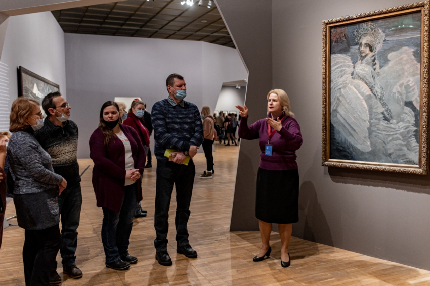 За все время сотрудничества с Третьяковской галереей было подготовлено около десятка авторских маршрутов. Мы сняли два видеогида на русском жестовом языке: по выставкам “Русская сказка” и “Михаил Врубель”.