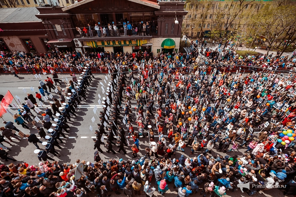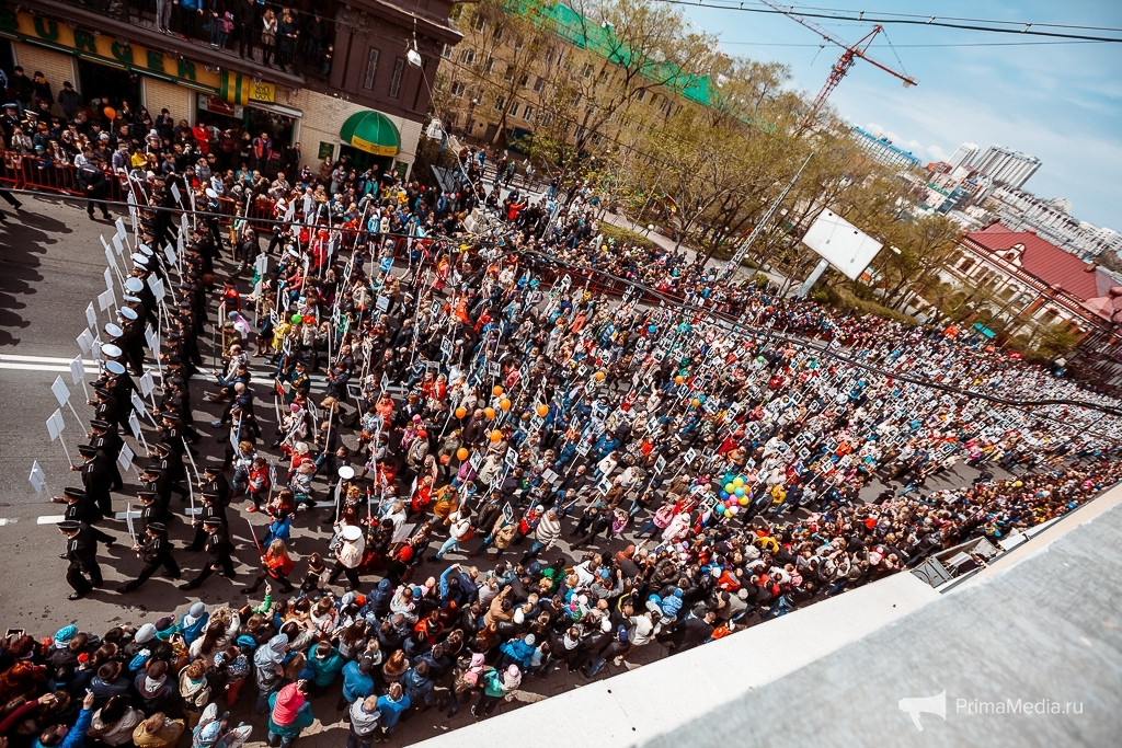 Владивосток присоединился к акции “Бессмертный полк” в 2013 году. Но если в честь 68-й годовщины Победы по Светланской прошагало около тысячи владивостокцев с портретами своих предков, то на следующий год уже 5 тысяч, а на 70-е Победы — 15 тысяч!