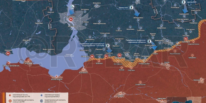 В Мирное и Запорожское на Гуляйпольском участке прибыли отряды грузинских наемников. На этом рубеже они действуют совместно с подразделениями 108 и 110 бригад теробороны.