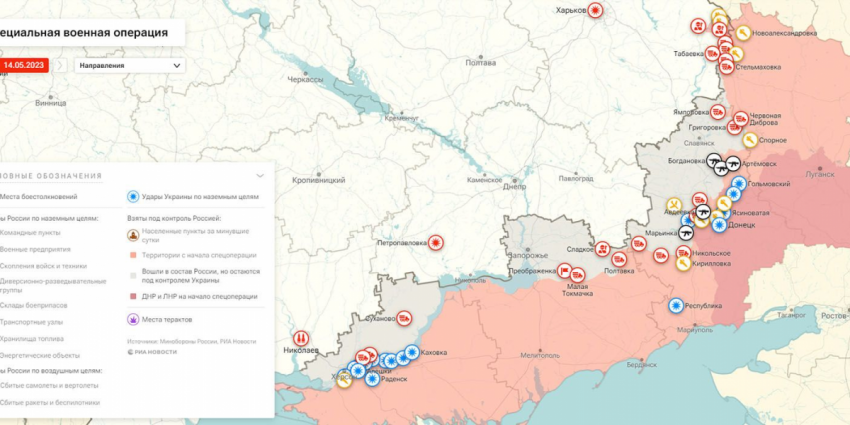 - Карта боевых действий на Украине сегодня, к утру 15 мая 2023 г. Спецоперация России на Украине, день 446-й спецоперации РФ: