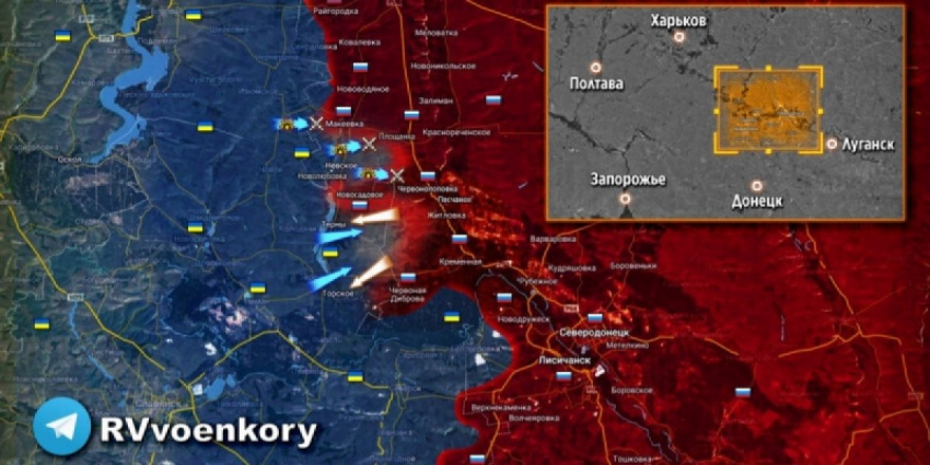 ВС РФ ведут наступательные действия местного значения в районах Белогоровки, Верхнекаменского и Спорного на Северском направлении, в то время как западнее Донецка продолжается штурм Водяного и Первомайского, пытаясь перерезать трассу М-04, выйти к юго-западной части Авдеевки и к Красногоровке.