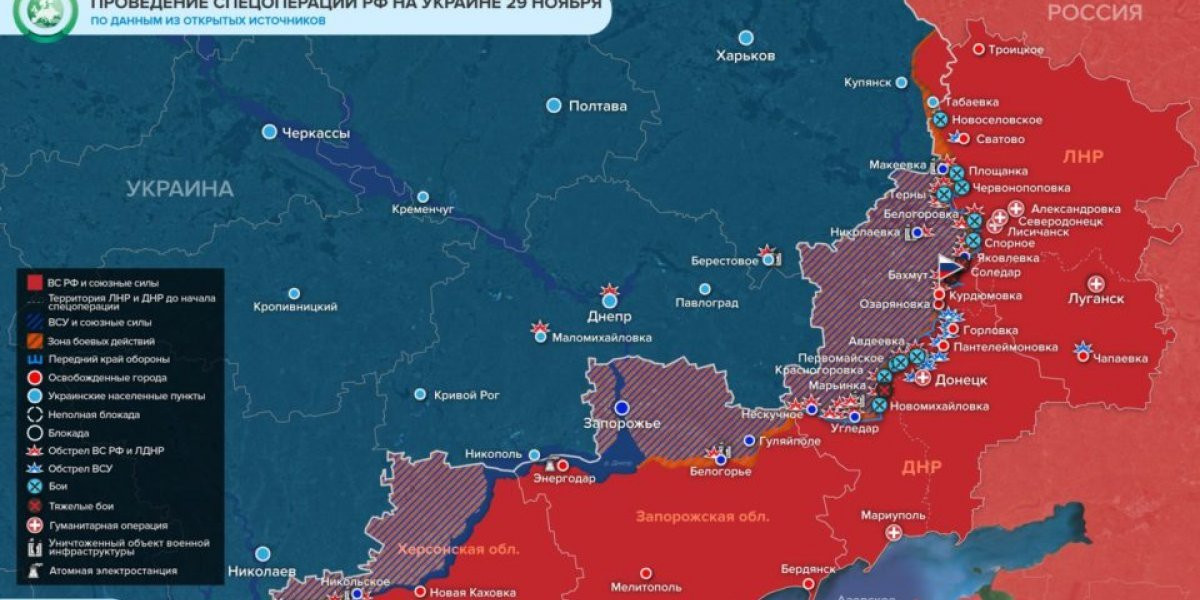- Последняя обновленная карта военных действий на Украине сегодня, 30 ноября 2022