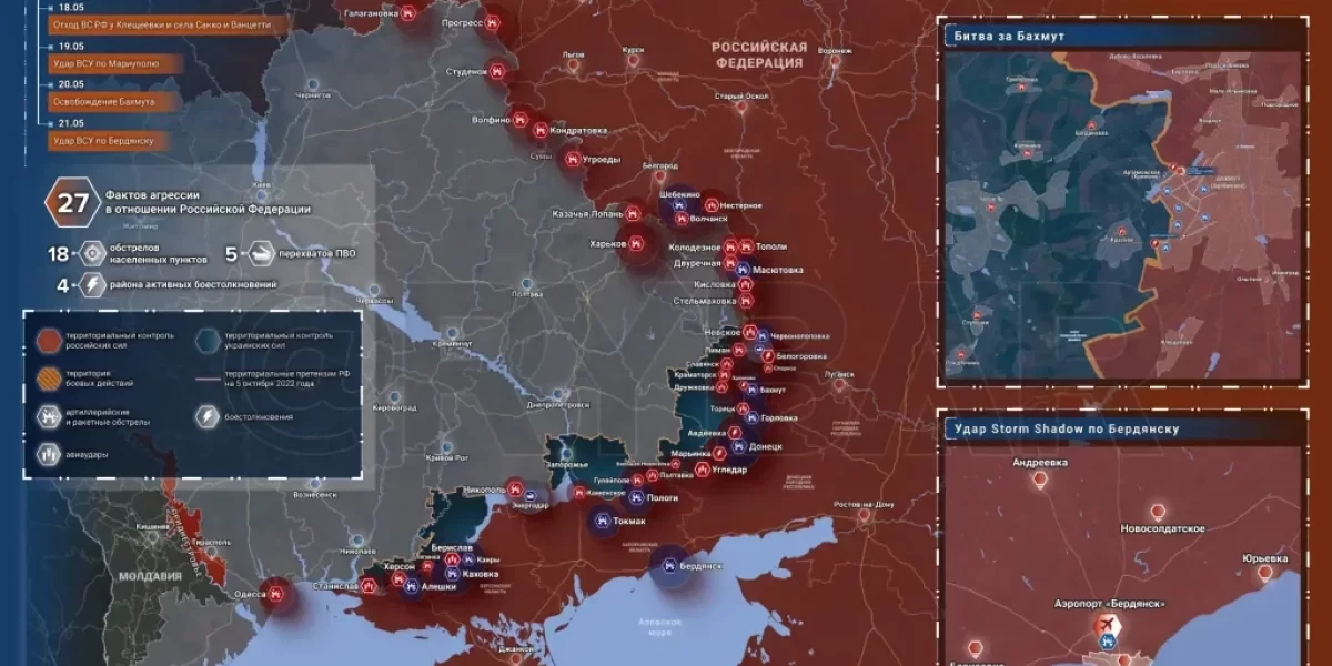 - Последняя обновленная карта военных действий на Украине сегодня, 22 мая 2023