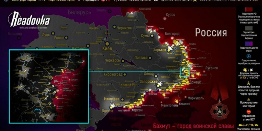 Карта боевых действий на Украине сегодня 22.05.2023 в реальном времени на сейчас