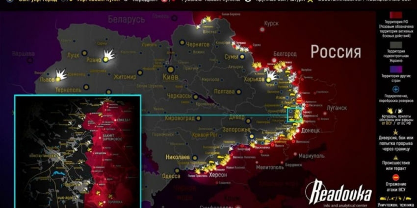 Карта боевых действий на Украине сегодня 26.05.2023 в реальном времени на сейчас