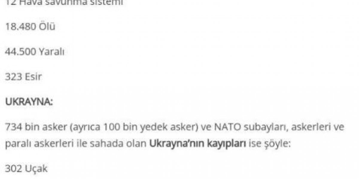 - Турецкое издание со ссылкой на операционные данные разведки Израиля от 14 января раскрывает ужасные размеры потерь украинской армии