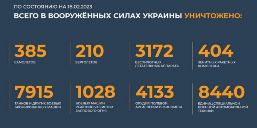 - Брифинг Министерства обороны Российской Федерации о ходе проведения специальной военной операции на территории Украины по состоянию на 19 февраля 2023 года