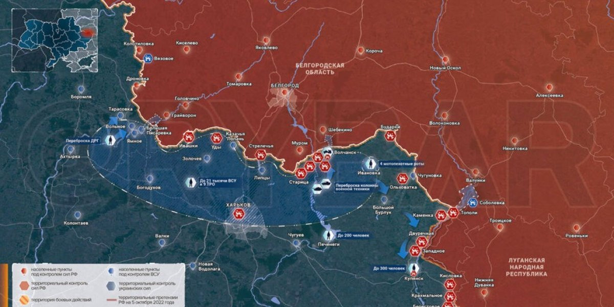 На луганском направлении российские войска при поддержке артиллерии попытались продвинуться у Белогоровки. Без успеха. По позициям ВСУ в Ямполе отработали ВКС России, а артиллерия – в Торском, Ямполевке, Невском, Новосёловском, Берестовом, Табаевке, Кисловке и Двуречной. Украинская армия нанесла ракетный удар по Луганску. Артиллерия ВСУ обстреливала Лиман Первый и Масютовку. (Рис. 5)