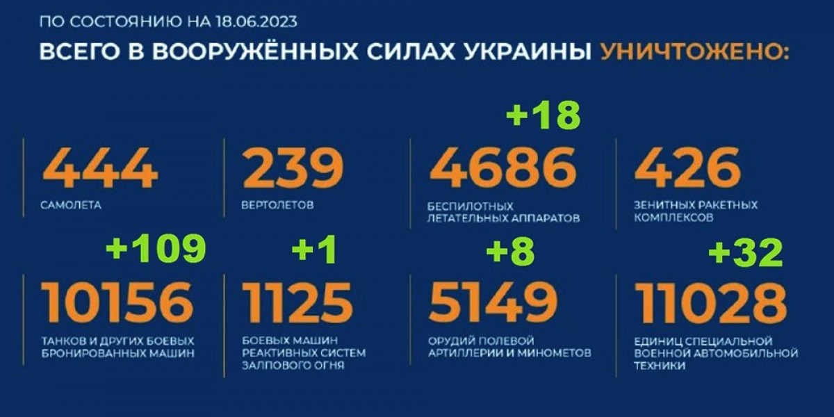 - Актуальный брифинг Министерства обороны РФ о ходе проведения специальной военной операции на территории Украины по состоянию на 18 июня 2023 года. Сводка боевых действий на Украине.