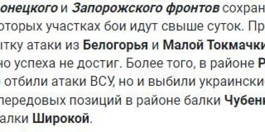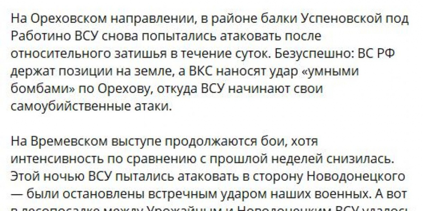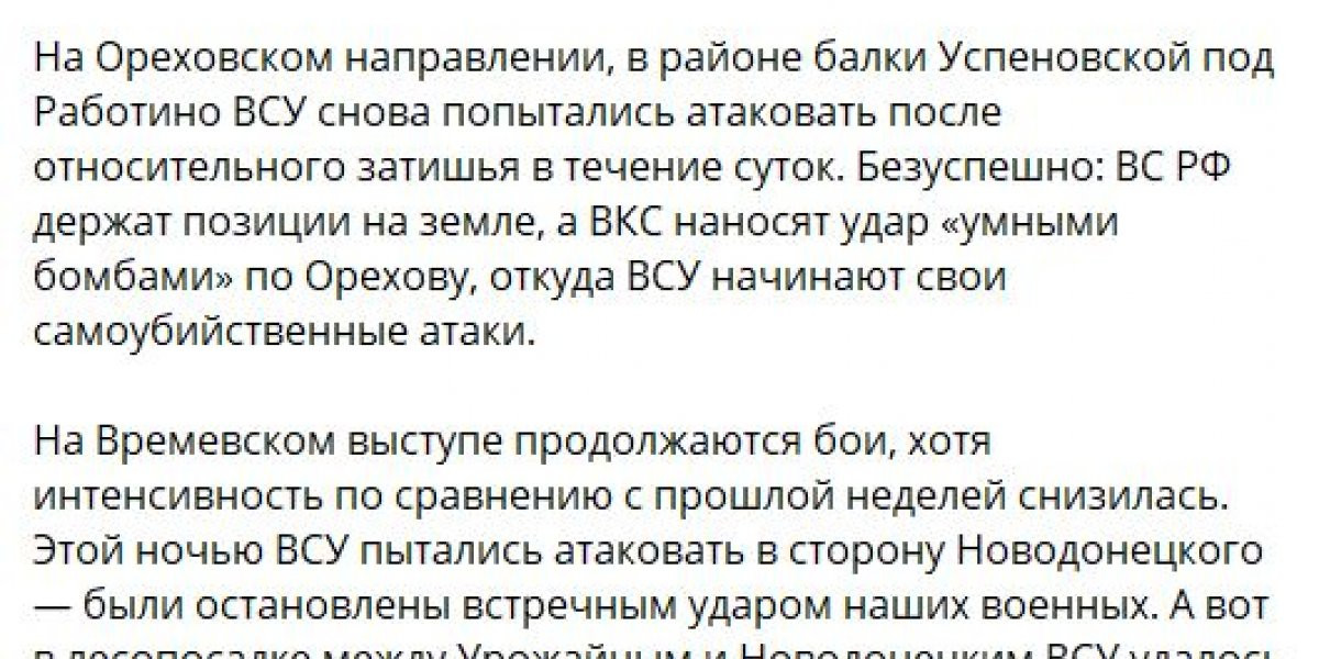 На Запорожском направлении наши войска продолжают сдерживать наступление ВСУ