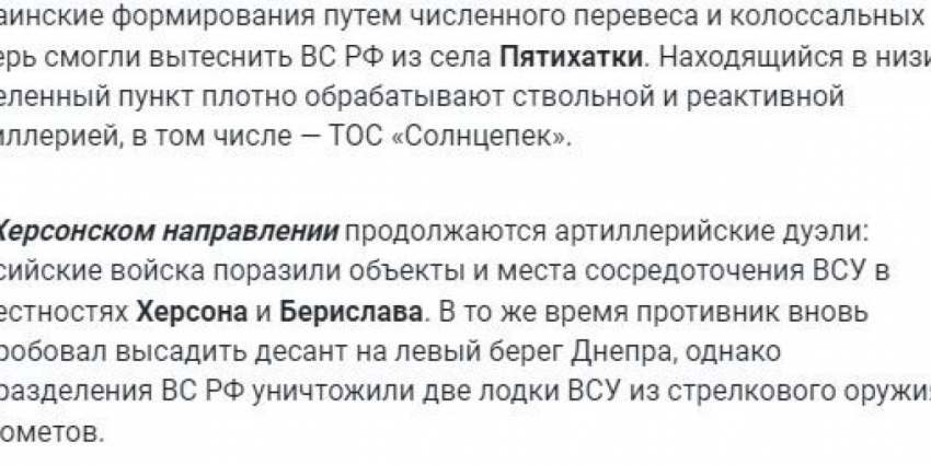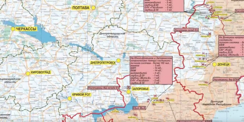 Здесь, по заявлению Минобороны РФ, в результате огневого поражения в течение суток уничтожены более 40 украинских военнослужащих, четыре автомобиля, а также гаубица М777.