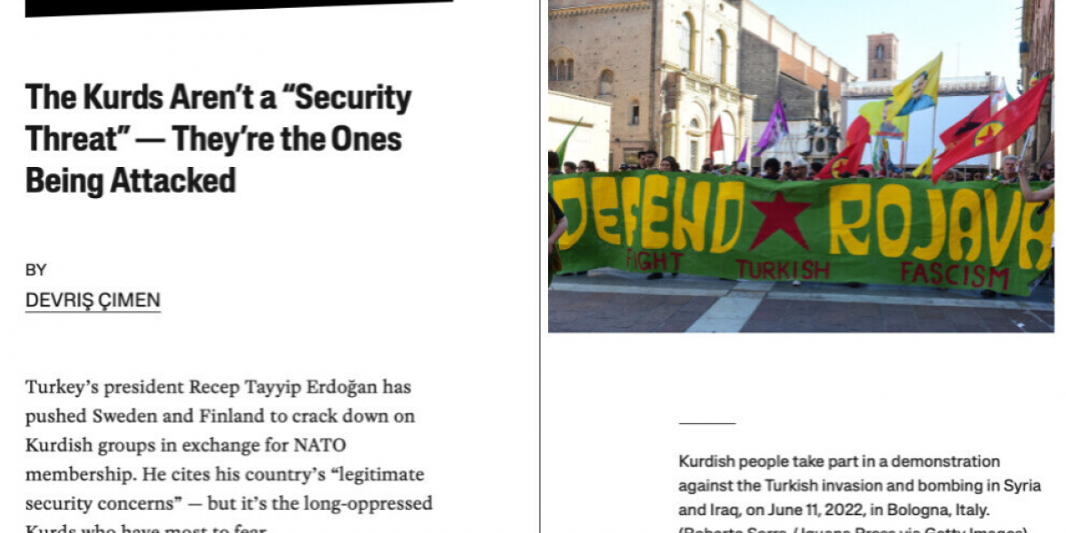 Европейский представитель Демократической партии народов (ДПН) Девриш Чимен заявил в статье, которую он написал для американского онлайн-журнала Jacobin, что озабоченность Турции безопасностью представляет угрозу для курдов, и призвал западные правительства положить конец недальновидная политика.