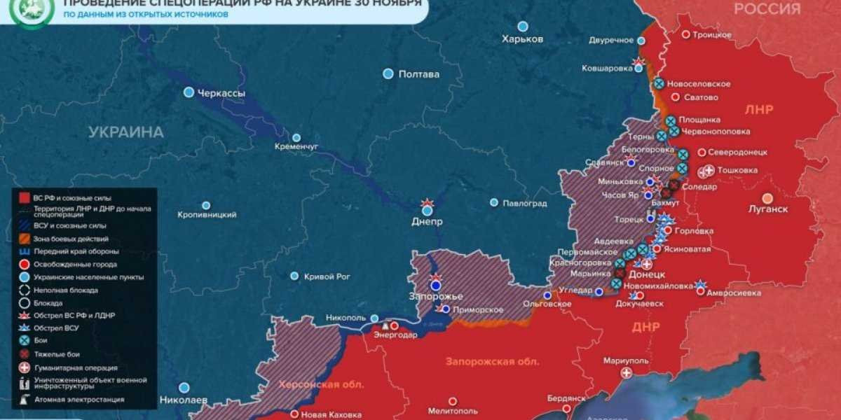 - Последняя обновленная карта военных действий на Украине сегодня, 1 декабря 2022