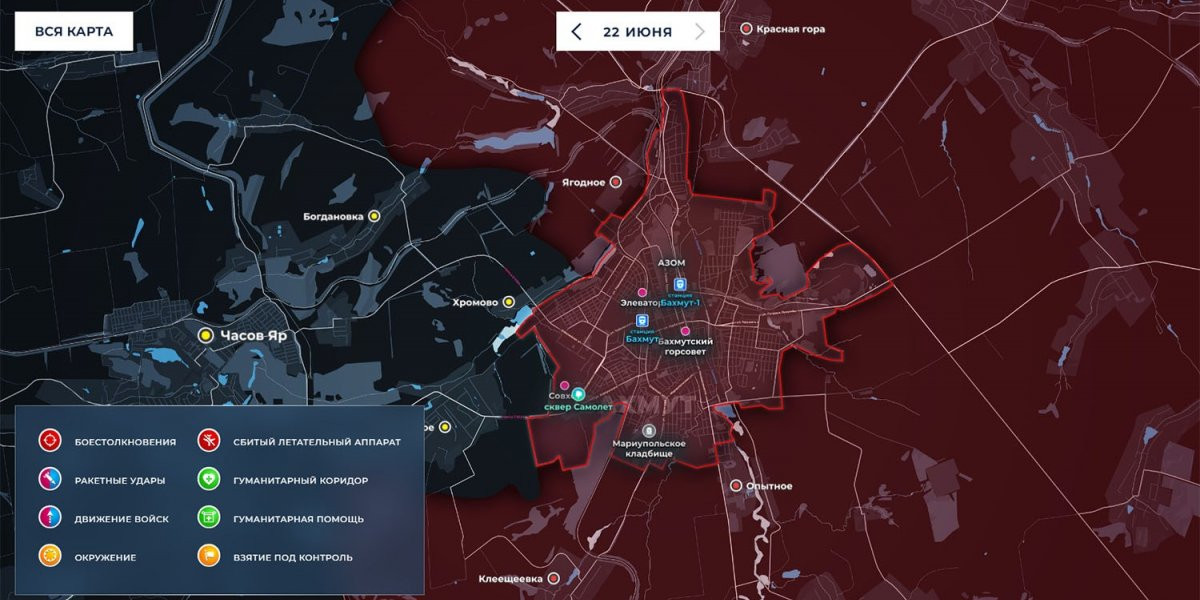 - Карта боевых действий на Украине сегодня, обстановка 22 июня 2023 года от Mash. Бои на Артёмовском направлении