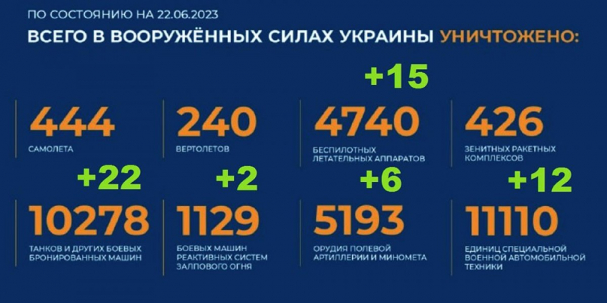 - Спецоперация России на Украине, 22 июня 2023г. : Развитие событий, комментарии военкоров и заявления первых лиц, экономика и международная реакция.