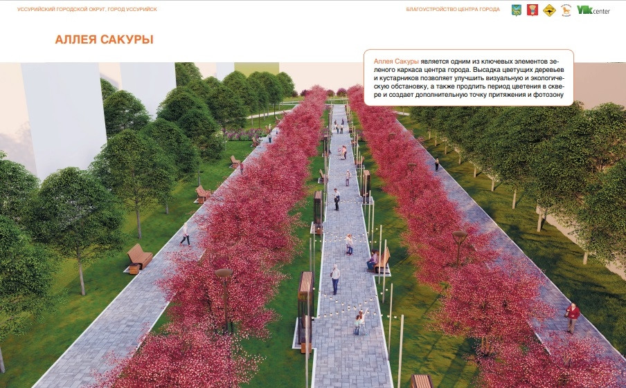 Интересное предложение по созданию настоящей аллеи сакуры. Красивоцветущие деревья могут стать еще одной достопримечательностью города. Здесь также будет аллея для отдыха и стоять туалетные модули.