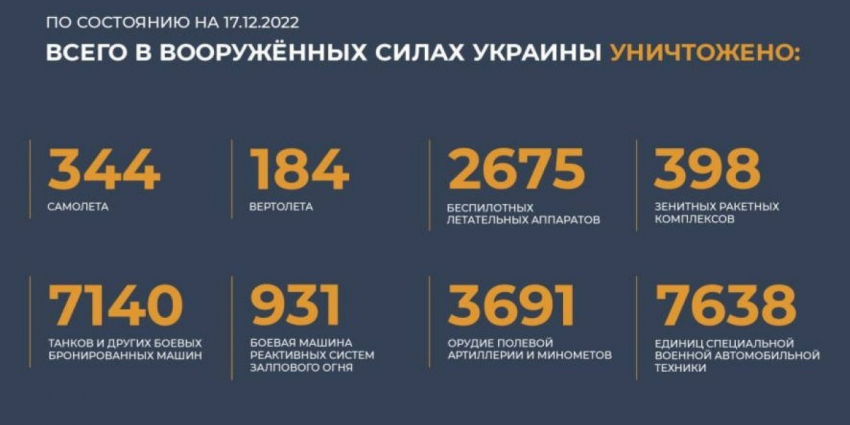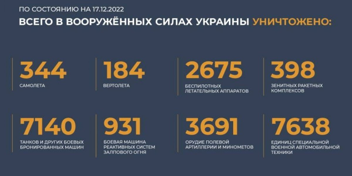Военная спецоперация РФ на Украине. Свежие данные на 18 декабря, последние новости сегодня