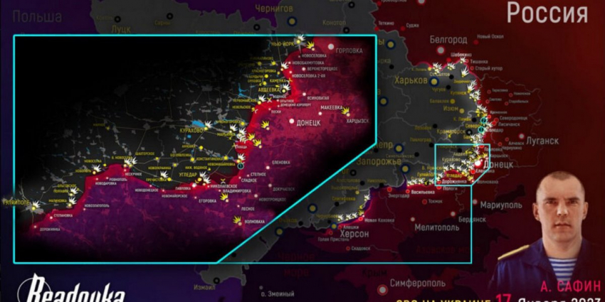 - Последний обзор Юрия Подоляка от 18.01.2023 на 20:00: Соледар и Марьинка, два пункта, от которых зависит судьба Донбасса