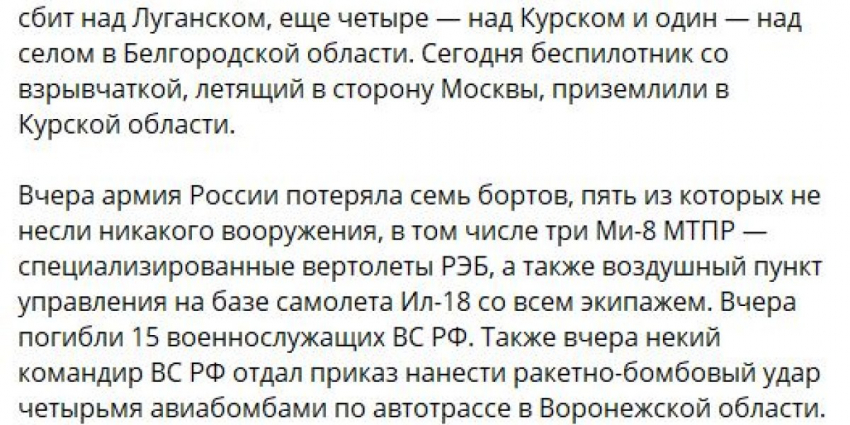 Журналист в качестве подтверждения приводит в пример слова украинского военного, который жалуется на господство российской авиации и высказывает полную беспомощность перед атаками с неба.