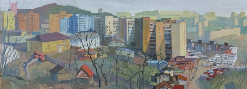 Дмитрий Проскуряков Вид с сопки на ул. Тунгусскую, Владивосток. Бумага, гуашь. Фото: Предоставлено организаторами выставки