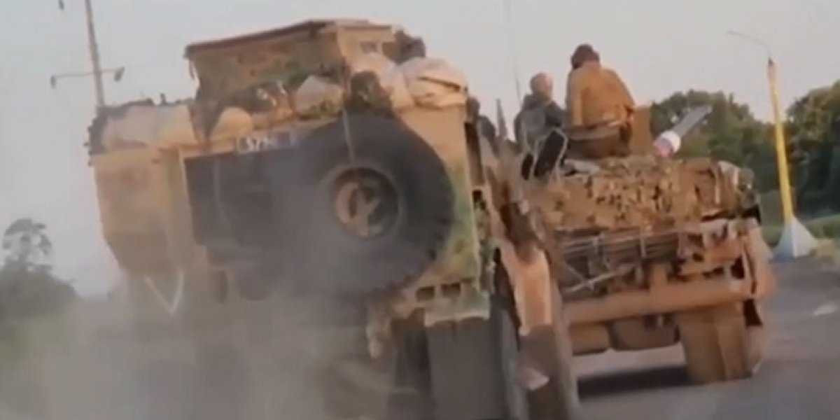 На другом видео наши бойцы тянут к себе американский броневик MRAP Oshkosh M-ATV.