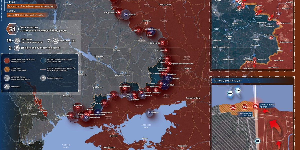 - Актуальный брифинг Министерства обороны РФ о ходе проведения специальной военной операции на территории Украины по состоянию на 1 июля 2023 года. Сводка боевых действий на Украине.