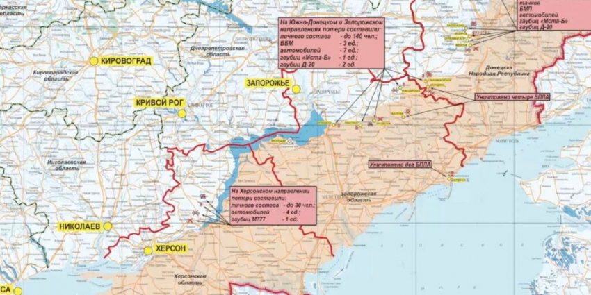 «Силами подразделений ВДВ противник был остановлен в серой зоне. В течении дня наносилось огневое поражение авиацией и артиллерией Южной группировки войск. Уничтожено более 200 украинских военнослужащих, пять танков, восемь БМП и более десяти беспилотных летательных аппаратов типа «Валькирия» и «Лелека-100», — рассказал собеседник агентства.