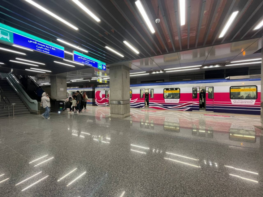В конце дня прокатился на метро, билеты в кассе продают только по карточкам (внутрииранским). Чтобы с меня взять оплату в 30 тысяч реалов, сотрудник ходил куда-то в служебные помещения. Забавно, что вагон, обозначенный “для женщин”, внутри поезда не отделён от соседнего, и можно свободно пройти туда-обратно. Навигация в метро продублирована на английском, но порой смущает индикация справа налево.