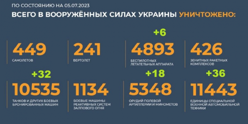 - Актуальный брифинг Министерства обороны РФ о ходе проведения специальной военной операции на территории Украины по состоянию на 5 июля 2023 года. Сводка боевых действий на Украине.