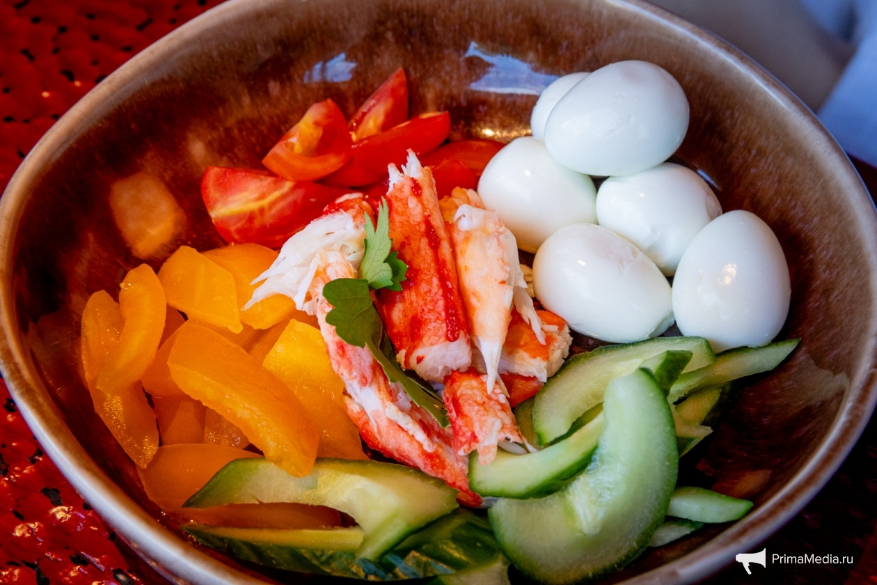 “При выборе продуктов мы акцентировались на тех, которые обычно используются для завтрака, например, яйца и сочетали их с продуктами нашего моря — подкопчённой неркой, крабом, креветкой ботан и не только. Всё это — достояние нашего Приморского края. Я считаю, что всё получилось, и эти позиции достойны быть на завтраке во Владивостоке”, — считает Егор Анисимов.