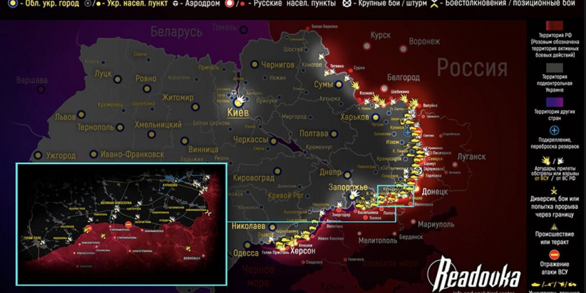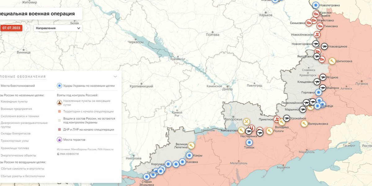 - Карта боевых действий на Украине, к утру 8 июля 2023г., от РИА Новости. Карта специальной военной операции.