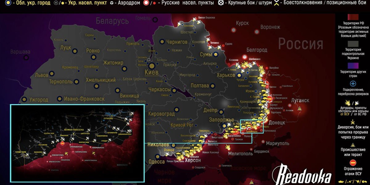 - Карта боевых действий на Украине, к утру 10 июля 2023г., от РИА Новости. Карта специальной военной операции.